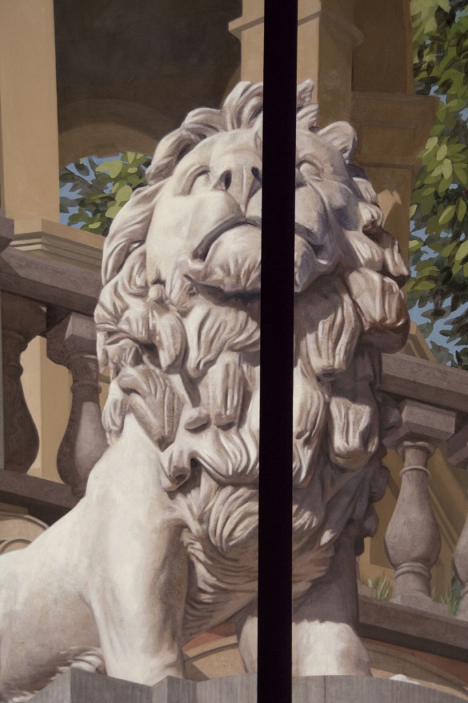 Le tryptique est une allégorie des trois règnes (animal, minéral, végétal) peinte en trompe-l'œil. L'axe de vision idéal se situe sous l'œuf d'autruche suspendu à la croisée des structures de la verrière ; il s'agit du point précis d'où chaque volet est vu à égale distance par le spectateur.